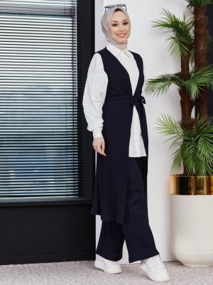 Tofisa Lacivert Kuşaklı Yelek