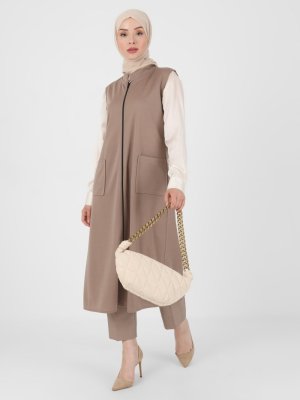 ZENANE Vizon Boydan Fermuarlı Cep Detaylı Yelek