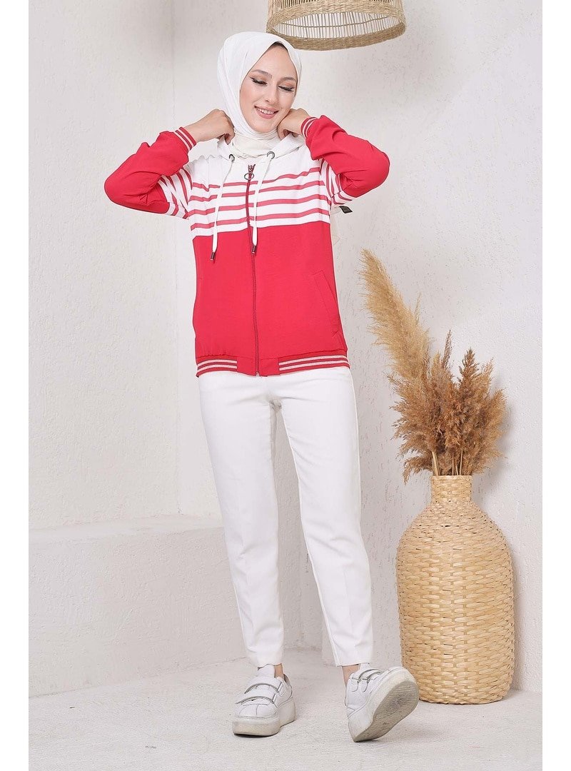 İmaj Butik Çizgi Detaylı Ayrobin Hırka/kırmızı