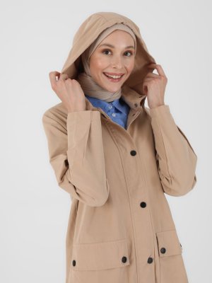 Benin Bej Pamuk Kumaşlı Çıtçıtlı Trençkot