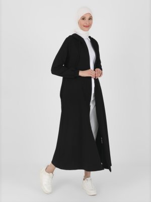 Benin Siyah Kapüşon Detaylı Fermuarlı Spor Pardesü