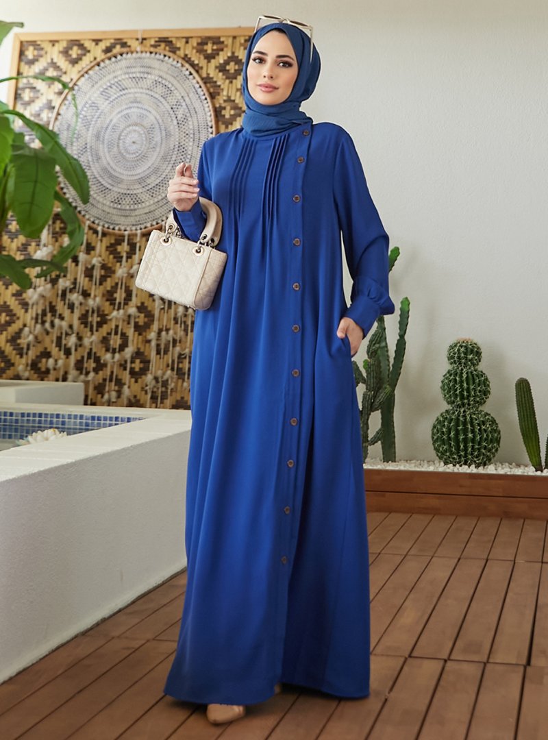 Neways Saks Mavi Önü Düğme Detaylı Ferace