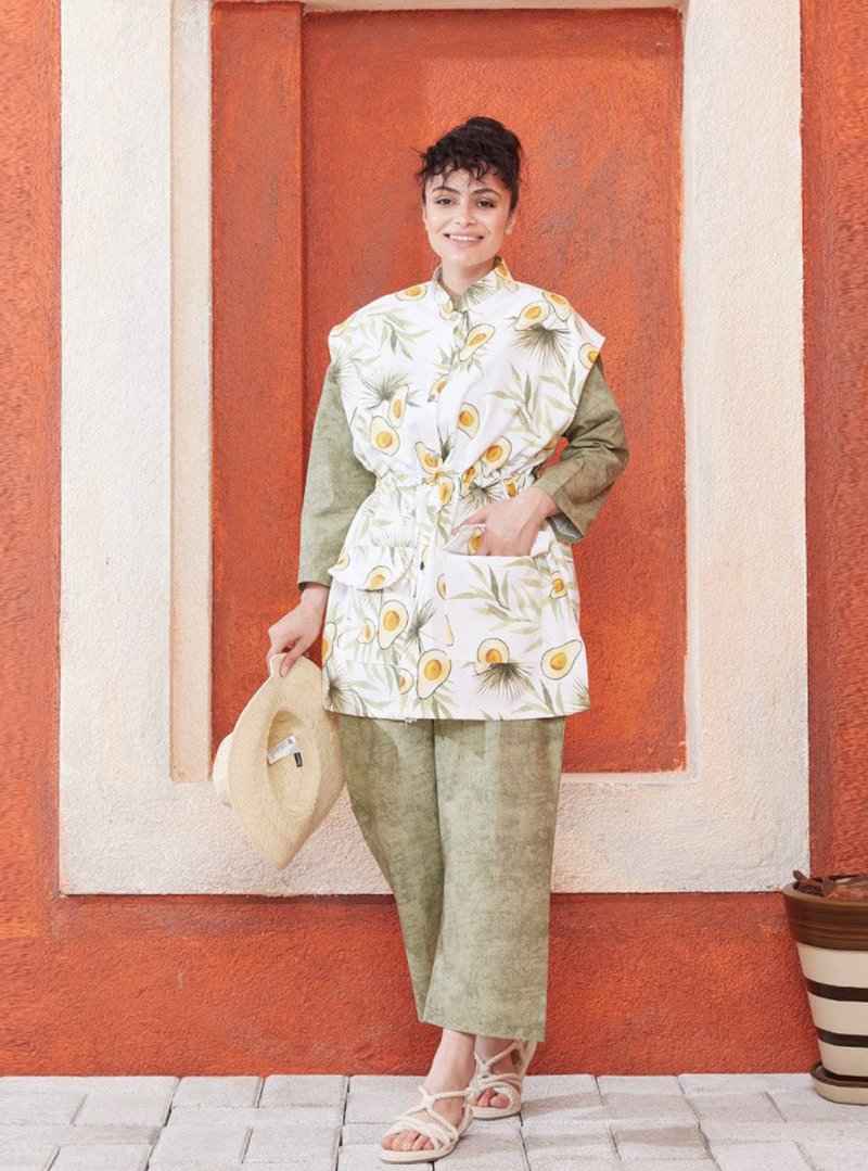 Ceylan Otantik Beyaz Avokado Kısa Kanvas Yelek