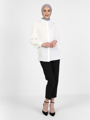 Refka Off White Yakası Dantelli İpek Tuşeli Gömlek