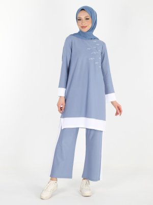 PLİSTRE Bebe Mavisi Tunik & Pantolon İkili Takım