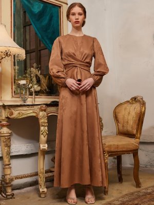 Ceylan Otantik Sütlü Kahve Bağlama Detay Etek Abiye Takım