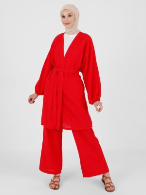 Benin Kırmızı Kimono & Pantolon Takım