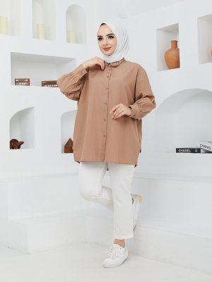 SAHRA BUTİK Vizon Yakası Taşlı Gömlek