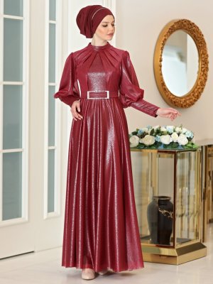 Ahunisa Bordo Safir Abiye Elbise