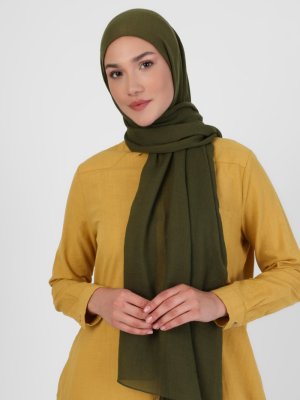 Zen İpek Haki Pamuk Kraş Şal