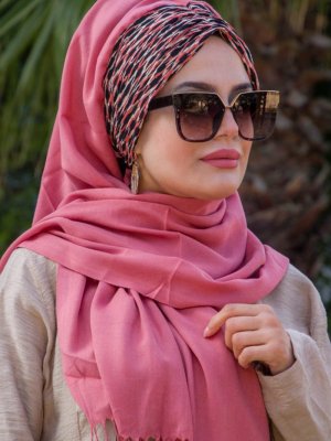 AİŞE TESETTÜR Gül Kurusu Batik Büzgülü Hazır Şal