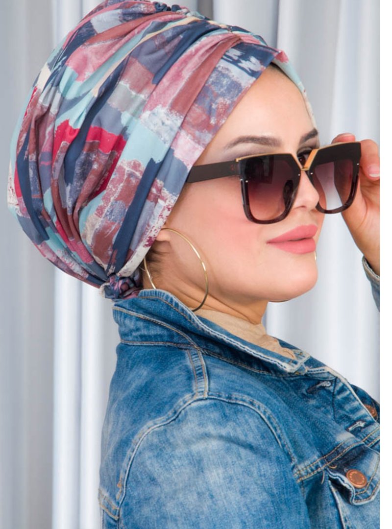 AİŞE TESETTÜR Turkuaz Dijital Baskılı Tokalı Bone