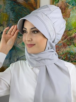 BUTİK AMBAR Taşlı Toka Detaylı Atkılı Şapka Açık Gri