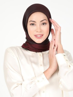 Zen İpek Bordo Desenli İpeksi Pano Eşarp
