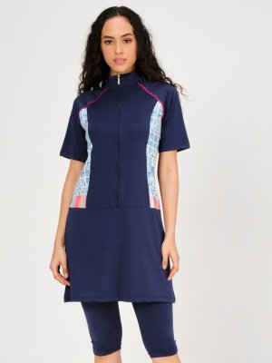 Alfasa Lacivert Fermuarlı Yarım Kol Yarı Kapalı Mayo