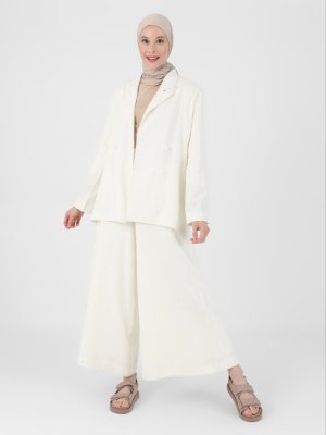 Refka Off White Çift Kapama Keten Ceket