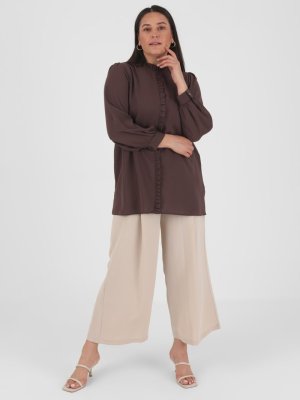 Alia Büyük Beden Fırfır Detaylı Tunik Soğuk Kahve
