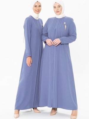 Beyza Mavi Nervür Detaylı Sade Elbise