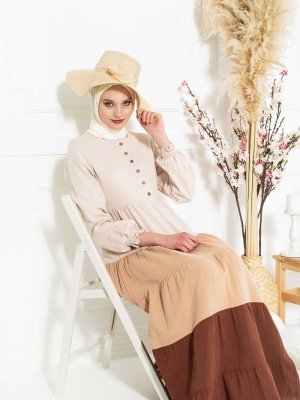 Beyza Kahve Tahta Düğmeli Elbise