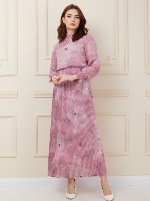 Olcay Pudra Önü Büzgülü Piliseli Şifon Elbise