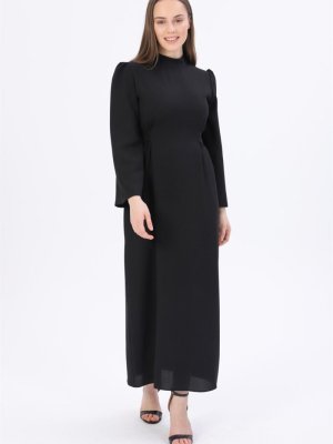 Hadise Siyah Arkadan Bağcıklı Krep Elbise