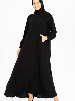Beyza Siyah Keten Dokulu Sade Spor Elbise