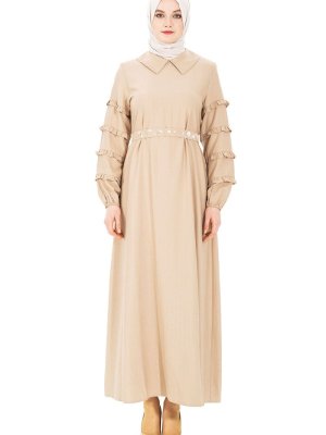 Beyza Bej Etnik Taş İşlemeli Elbise