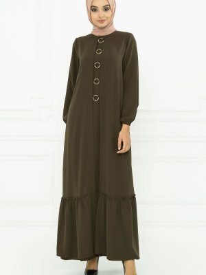 Beyza Haki Halka Detaylı Elbise