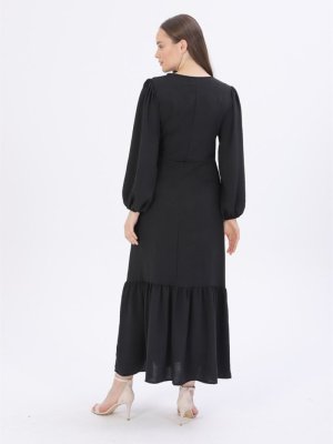 Hadise Siyah Ayrobin Eteği Fırfırlı Elbise