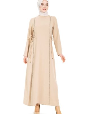 Beyza Bej Taş Şeritli Elbise