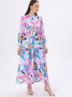 Hadise Lila Kuşaklı Desenli Elbise