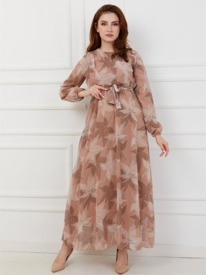 Olcay Kamel Önü Volan Detaylı Desenli Şifon Elbise
