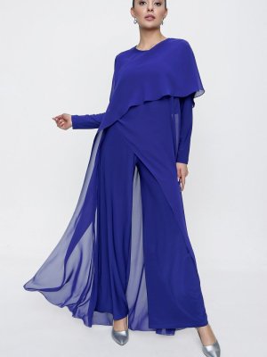 Saygı Giyim Saks Uzun Kollu Üstü Şifon Likra Tulum
