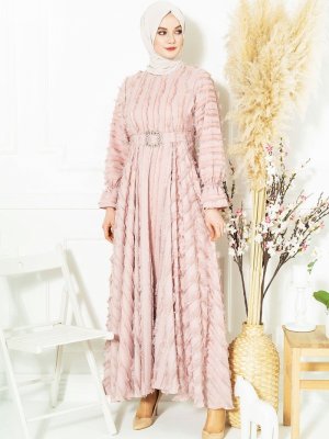 Beyza Pudra Saçaklı Abiye Elbise