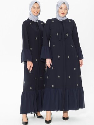 Beyza Lacivert Düğmeli Taşlı Ferace
