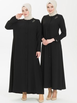 Beyza Siyah Boncuk İşlemeli Nervür Detaylı Ferace