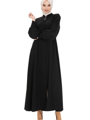 Beyza Siyah Kolları Pilise Detaylı Fermuarlı Ferace
