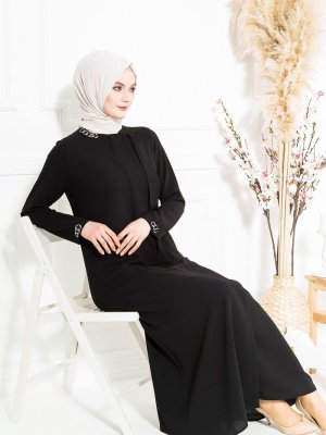 Beyza Siyah Zincir Aksesuar Detaylı Ferace