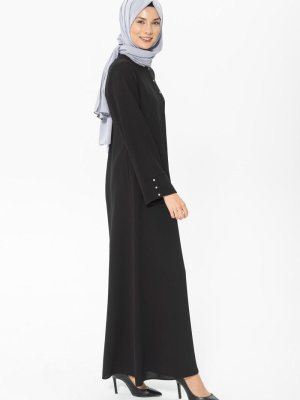 Beyza Siyah Nervür Ve Taş Detaylı Ferace