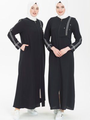 Beyza Lacivert Nakış Şeritli Ferace