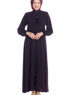 Beyza Mürdüm Fermuarlı Reglan Kol Ferace