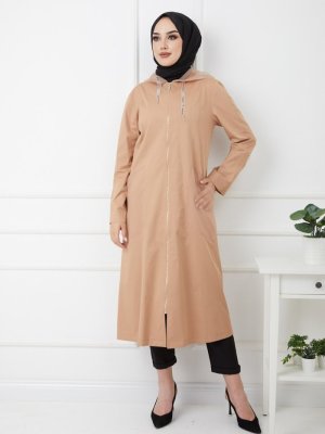 Olcay Kamel Organze Kapüşonlu Astarsız Pamuk Kap