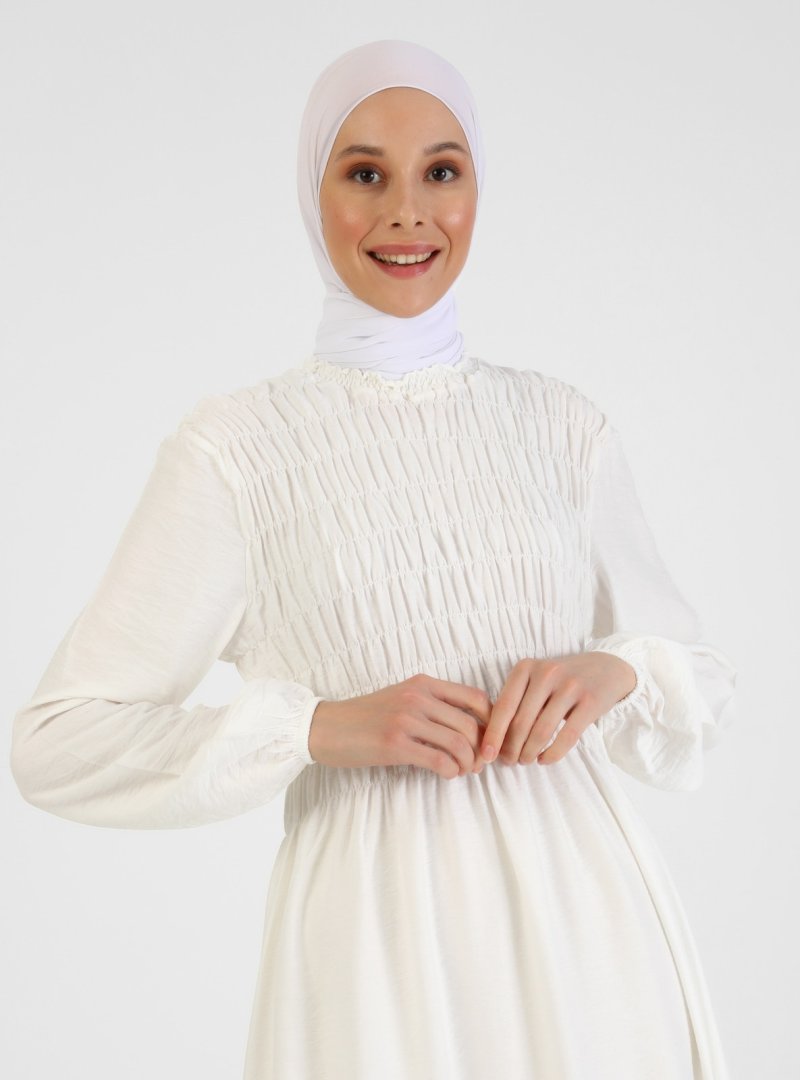 Refka Off White Gipe Detaylı Elbise
