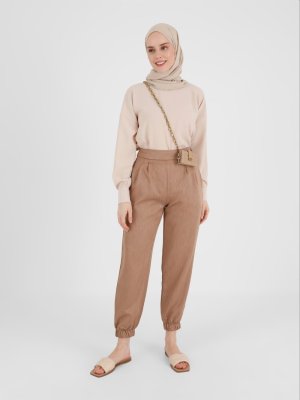 Refka Kahverengi Paçası Lastikli Havuç Pantolon