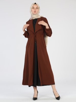 Tekbir Tekbir Bel Büzgülü Uzun Ceket Kahve