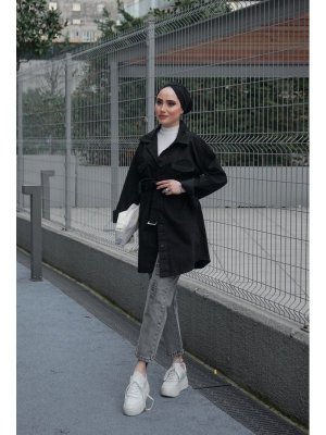 Lurex Moda Siyah Yıpratmalı Kemerli Kot Ceket