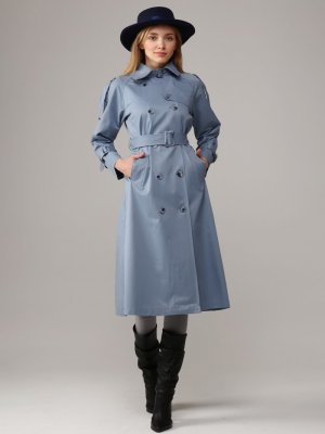Jamila Mavi Düğmeli Trençkot Bulut