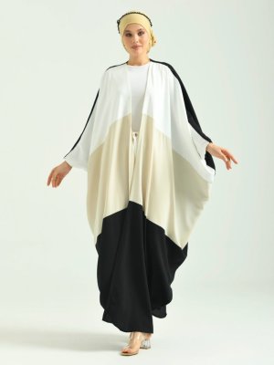 Filizzade Üç Renkli Önü Açık Ferace Siyah Bej