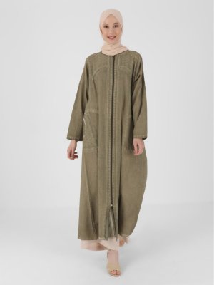 Çıkrıkçı Haki Boydan Fermuarlı Ferace