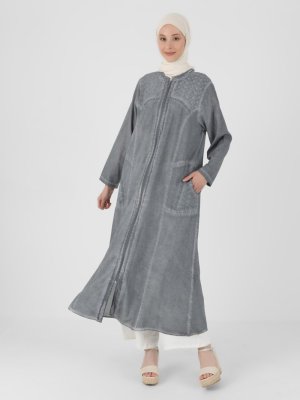 Çıkrıkçı Gri Boydan Fermuarlı Ferace